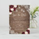 Invitation Dentelle florale Burgundy Bois Sauvez la date
