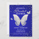 Une modèle moderne et élégante d'invitation à la douche nuptiale avec un thème papillons avec un arrière - plan bleu royal, le mot BRIDAL couvert de strass (simulé, pas de vraies pierres) et dans le script de calligraphie moderne, papillons en dentelle (c'est un effet numérique, pas de vrai dentelle !) et typographie moderne. Un modèle chic boho nuptiale invitation à une mariée moderne qui aime les papillons.