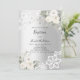 Une élégante invitation au baptême, neutre du genre. Un arrière - plan faux argenté décoré de fleurs blanches, de roses, de dentelle et d'une croix. Personnalisez et ajoutez un nom et des détails.