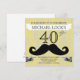 Célébrez avec style avec ces invitations d'anniversaire pour hommes rétro et modernes, avec le numéro imprimé sur un fond jaune à texture de bois rustique et une moustache pour ajouter de l'amusement. Pas seulement pour un anniversaire, parfait pour un enterrement de vie de garçon aussi !
