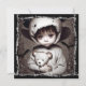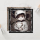 Invitations déplaisantes à la fête d'Halloween. Éffrayant petit fantôme ethnique avec de gros yeux effrayants tenant des poupées super effrayantes.