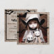 Invitations déplaisantes à la fête d'Halloween. Éffrayante petite fille fantôme avec de grands yeux effrayants tenant des poupées super effrayantes.