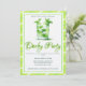 Organisez une élégante soirée Kentucky Derby avec cette belle invitation aquarelle représentant une illustration rafraîchissante de cocktail mint julep avec des feuilles de menthe fraîches. L'élégant schéma de couleurs vert et blanc avec une bordure rayée capture l'essence de l'hospitalité sudiste et des garden-parties traditionnelles.