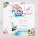 Faites sensation avec notre invitation de week-end enterrement de vie de jeune fille sur le thème de la piscine 'Dernier bain'. Avec un design vibrant à l'aquarelle mettant en vedette des flamants roses, des fleurs tropicales, des jouets de piscine et des lunettes de soleil, cette invitation donne le ton parfait pour un week-end inoubliable d'enterrement de vie de jeune fille. Personnalisez maintenant pour créer une invitation festive et unique pour votre célébration spéciale.
