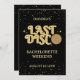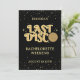 Préparez-vous à danser toute la nuit avec cette Dernière invitation d'itinéraire pour le week-end de bachelorette Disco. Cette invitation à thème rétro présente une boule disco dorée super et une police rétro funky pour préparer le terrain pour une nuit de plaisir et de fête. Parfait pour les futurs mariés qui aiment faire du boogie, cette invitation ne manquera pas d'exciter tout le monde pour une nuit de danse et de souvenirs.