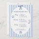 Parcourez la voile pour une fête inoubliable avec notre invitation à l'itinéraire "Dernier Toast on the Coast" ! Doté d'un bleu océanique doux, de coquillages dessinés à la main et d'illustrations de plage, d'un arc de coquette et d'éléments nautiques chics, ce design saisit le charme d'une escapade côtière. Une typographie élégante et des accents bleus donnent l'ambiance idéale pour une soirée 30A, Charleston, Hamptons, Miami ou toute soirée balnéaire. Le dos comprend un itinéraire de week-end personnalisé, gardant votre voyage de filles organisé et sur le thème. Bravo à la future mariée !