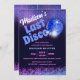 © Socialite Designs Inc. & LICENSORS. Célébrez une soirée Disco Bachelorette en invitant les invités avec cette dernière invitation de soirée disco bachelorette rétro glam. Les couleurs sont bleues, roses et violettes.