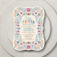Mariachi, margaritas et souvenirs ! Lancez la fête avec ce design de fêtes folkloriques mexicaines. Le texte coloré et l'oeuvre d'art (dessinée à la main par Lively Scribe) donnent à ce design une ambiance fantaisiste mais élégante. Parfait pour les latins de votre vie. Ou une fête qui se trouve juste à côté du Cinco de Mayo ou de Dia de los Muertos. Commandez vos invitations imprimées et les fournitures de fête ou téléchargez vos invitations numériques dès maintenant pour une journée qu'ils n'oublieront jamais !