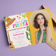 Présentation de notre Finale Fiesta Mexicaine Vibrant Bachelorette Party Invitation avec la photo de la mariée à être. Cette invitation est la meilleure façon de célébrer la future mariée et son prochain mariage avec une touche mexicaine colorée et festive. Avec un design dynamique avec un sombrero ludique, des cactus, du verre tequila margarita et une photo personnalisée de la future mariée, cette invitation capture l'esprit du Mexique et promet une célébration amusante et animée. Les couleurs vives et le design unique en font une invitation mémorable qui ravira vos invités pour la fête à venir. Notre invitation de haute qualité est imprimée sur des cartes de qualité supérieure, assurant un look professionnel et poli. Les détails personnalisables, tels que le nom, la date, l'heure, l'emplacement et les informations RSVP, rendent l'invitation vraiment personnalisée à votre goût. Cette finale Fiesta Mexicaine Vibrant Bachelorette Party Invitation avec la photo de la mariée à être est la façon parfaite de donner le ton pour votre célébration inoubliable. Avec sa touche unique et personnalisée, il est sûr de faire que la future mariée se sente spéciale et aimée. Alors rassemblez vos filles, mettez vos sombreros, et préparez-vous à faire la fête comme s'il n'y avait pas de mañana avec notre Finale Fiesta Mexicaine Vibrant Bachelorette Invitation avec la photo de la mariée à être. Fêtons dans le style !