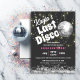 © Socialite Designs Inc. & LICENSORS. Célébrez une soirée Disco Bachelorette en invitant les invités avec cette dernière invitation de soirée disco bachelorette rétro. Les couleurs sont argent, blanc, rose et gris. Le design incorpore une boule de disco argent et des lumières à cordes or / blanc comme arrière - plan.