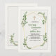 Une belle invitation avec des grappes de branches dans les coins, dans des nuances de vert, sur un cadre abstrait doré. La croix mise en vedette peut être déplacée à n'importe quel endroit, agrandie ou réduite ( + - ) ou éliminée, ce qui fait de cette invitation un produit polyvalent. (<a href="http://www.freepik.com">Conçu par Freepik</a>). <br/><br/>La carte est facile à personnaliser avec votre texte, police et couleur de police.<br/><br/>Pas exactement ce que vous cherchez ? Tous nos produits peuvent être conçus sur mesure pour répondre à vos besoins sans frais supplémentaires.<br/><br/>Contactez-nous simplement à askcottonlamb@gmail.com.<br/><br/>Produits coordonnés disponibles : demandez-nous !