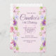 Une belle bordure de fleurs roses et lavande "pousse" sur cette invitation rose. Belle pour tous les âges et toutes les fêtes féminines() Conçue par Freepik<a href='https://www.freepik.com/free-vector/cherry-blossom-background-in-watercolor-style_1722364.htm'>). </a>() La carte est facile à customiser avec votre libellé, police, couleur de police et choix de six types de papier.<br/>() Pas exactement ce que vous cherchez? Tous nos produits peuvent être conçus sur mesure pour répondre à vos besoins sans frais supplémentaires.<br/>() Communiquez simplement avec nous à askcottonlamb@gmail.com<br/>() Coordonner les produits disponibles :