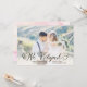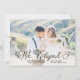 Ce faire-part élégant et à la mode de fugue de mariage comporte la belle calligraphie noire au-dessus de votre photo personnelle de mariage, et un lavage rose mou d'aquarelle sur le dos.