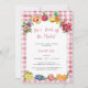 Célébrez la future mariée avec cette Invitation des fermiers de Fête des mariées de marché, avec un design d'aquarelle fantaisiste débordant de fruits colorés et de en vichy rose ludique. Inspiré d'un charmant marché de fermiers, cet invitation moderne allie à merveille charme rustique et modernité. C'est le choix idéal pour une douche nuptiale joyeuse et unique pleine de plaisir et d'amour frais!