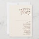 Ce simple désert | Natural White brunch & bubbly invitation est exactement ce que vous cherchez pour compléter votre douche de mariée boho rustique moderne. Idéal pour une ambiance occidentale minimaliste vintage ou une ambiance bohème automnale rétro. Le script minimal de cannelle foncée apparaît vraiment avec cet arrière - plan d'automne. Vous pouvez choisir de le garder tel qu'il est ou de le personnaliser avec vos propres oeuvres d'art ou photos. Faites défiler la collection pour sélectionner d'autres objets qui feront chanter votre mariage de automne avec authenticité !