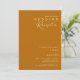 Ce simple désert | Burnt Orange invitation de mariage est exactement ce que vous cherchez pour compléter votre mariage boho rustique moderne. Idéal pour une ambiance occidentale minimaliste vintage ou une ambiance bohème automnale rétro. Le script blanc naturel minimal apparaît vraiment avec cet arrière - plan d'automne coloré. Vous pouvez choisir de le garder tel qu'il est ou de le personnaliser avec vos propres oeuvres d'art ou photos. Faites défiler la collection pour sélectionner d'autres objets qui feront chanter votre mariage de automne avec authenticité !