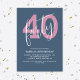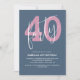 Célébrez votre 40e anniversaire avec style avec cette invitation moderne et chic fête d'anniversaire. Avec un arrière - plan gris clair et bleu, le grand numéro 40 est dans un joli rose avec une typographie en écriture blanche de quarante sur le dessus. En dessous, en typographie blanche, vous pouvez facilement customiser avec les détails de votre fête.