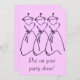 Qu'il s'agisse d'un Sweet sixteen, d'une Bachelorette, d'un bal de bal, d'une fête de bal ou d'une fête caritative, cette élégante invitation est parfaite pour une occasion de dressing. Le trio de robes du soir sur les cintres ont des jupes flottantes et se cintrent dans les taille avec des arcs et des sangles violets. Les robes élégantes s'adaptent à tous les anniversaires féminins de 15 à 95 ans, à une fête de mariage ou d'anniversaire, ou bien à toute célébration qui offre une chance de s'habiller. Le texte avant est "Mettez votre robe de fête !" mais peut être changé en texte de votre choix. L'exemple de texte de Sweet sixteen à l'envers est bien sûr entièrement personnalisable pour créer un invitation vraiment personnel à une célébration unique.