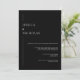 Voici notre Faire-part de mariage classique de photo noir & blanc élégant et moderne. Ce design sophistiqué est doté d'un arrière - plan noir chic et croustillant associé à une typographie blanche moderne et élégante. Au verso est l'option de télécharger votre photo. L'esthétique minimaliste dégage une élégance intemporelle, ce qui en fait le choix idéal pour les couples contemporains qui apprécient la simplicité et le style. Idéal pour donner le ton à un mariage moderne et chic, cette invitation saisit l'essence du raffinement. Personnalisez avec vos détails. Voir d'autres produits de la collection.
