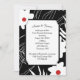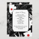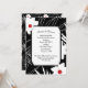 Design floral blanc contemporain avec des centres rouges sur noir pour inviter à un mariage. Le texte est modifiable. Peut être utilisé pour Vow Renewal Ceremony invitation.
