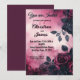 Ce design faire-part de mariage captivant évoque un sentiment de romance sombre et d'élégance intemporelle. Des roses noirs et rouges foncés se mêlent à de la dentelle délicate sur fond de lavages spectaculaires à l'aquarelle dans les tons bordeaux et prune. Un design qui conviendra parfaitement aux couples qui souhaitent s'initier à un mariage de style gothique ou victorien qui souhaite créer une invitation à la fois mystérieuse et séduisante.