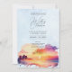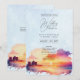 Invitation de mariage moderne avec une belle plage de coucher de soleil.