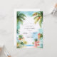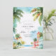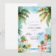 Cette invitation de mariage présente une scène de plage dans les Keys de Floride où une plage est remplie de palmiers et de verdure locale, avec des vibes de maisons\magasins humides clés.