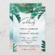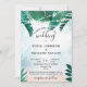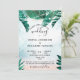 Planifiez votre mariage sur la plage de l'île tropicale destination de bord de mer ? Invitez vos invités avec cette belle invitation avec illustration de jarre légère avec des lumières féeriques scintillantes et des feuilles tropicales de palmier sur le sable et le fond de la mer