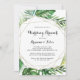 Cette invitation de brunch mariage tropical à destination géométrique est parfaite pour une famille et des amis le lendemain du brunch du mariage. Le design se compose de palmiers verts aquarelés peints à la main et de feuilles de bananes soigneusement arrangés en de beaux bouquets, ornant un cadre géométrique doré.