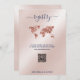 Carte du monde moderne et élégant Invitation Mariage Destination, détails du registre avec QR Code comme passeport avec rose or parties scintillant carte du monde