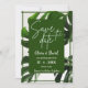 Carte d'invitation moderne de save the date tropical avec votre photo personnalisée, ce design élégant ajoute parfaitement une ambiance esthétique.