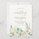Vos invités adoreront recevoir ce bouquet tout-en-un aux fleurs de magnolia blanches élégantes et à l'eucalyptus en aquarelle avec une écriture moderne et une typographie classique.