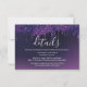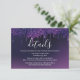 Cartes de détails de mariage moderne avec des gouttes de paillettes violettes mystérieuses.