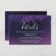 Cartes de détails de mariage moderne avec gouttes de paillettes violettes mystérieuses.
