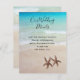 Cartes de détails de mariage sur plage avec deux étoiles de mer et image de fond de scène de plage. Incluez les détails de l'événement avec une police de caractère script moderne pour le titre et une police imprimée pour les informations. L'eau de l'océan tropical et le sable de la plage constituent l'arrière-plan pour votre texte personnalisé. Les cartes sont disponibles en plusieurs tailles et cette conception et mise en forme peuvent ne pas convenir correctement à toutes. Il sera imprimé comme dans l'aperçu.