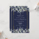 Une invitation de mariage élégante et tout compris avec de jolies feuilles de sauge et de lilas qui tombent sur un cadre doré élégant renfermant vos détails de mariage dans un texte classique élégant sur fond bleu marine. Personnalisez avec toutes vos informations spéciales de jour de mariage au verso, y compris votre RSVP, hébergement et détails supplémentaires. Conçu par Thisisnotme©