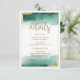 Cartes de détails élégants et modernes d'aquarelle verte émeraude et de géométrie de paillettes dorées pour invitation de mariage. Cette invitation de mariage chic et glamour est parfaite pour toute fille classe et sophistiquée. Ce design est idéal pour une soirée événementielle tendance et stylée. Concevez avec votre message et vos informations. Tous les designs sont imprimés.
