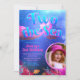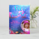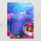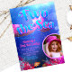 Cette invitation utilise le bleu et le rose comme palette de couleurs principale. La profondeur dans le design est prise en compte en faisant apparaître les poissons très éloignés du point de vue principal. Des effets d'éclairage sont utilisés en particulier dans la queue de sirène, pour en faire la star du design