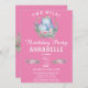 Obtenez votre rythme de fête de 2ème anniversaire et amis et famille invitations avec cette adorable invitation de fête d'anniversaire d'éléphant safari rose pour une fille. Ce design présente un arrière - plan rose avec un éléphant d'aquarelle douce, des feuilles tropicaux et de jolies fleurs roses. Customisez avec vos informations sur l'événement et le nom de votre enfant.
