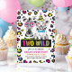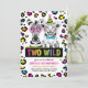 Préparez-vous à aller Two Wild avec notre invitation safari 2ème anniversaire! Ce design ludique est composé d'un bébé zèbre et d'un lion/tigre entouré d'accents empreintes de léopard audacieux pour une ambiance de jungle ultime. Plein de couleurs néons vives, il est parfait pour les garçons ou les filles qui fêtent leur deuxième anniversaire avec style. Que vous planifiez une soirée zoo, une aventure safari ou un bain à thème animal, cette invitation vous donne le ton pour une journée pleine de plaisir et d'excitation. Entièrement personnalisable avec les détails de votre fête pour le rendre unique.