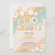 Invitation DEUX Fête d'anniversaire Rétro Fleur Hippie 70's