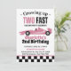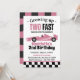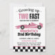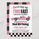 Célébrez le grand jour de votre petite speedster avec cette invitation personnalisée Two Fast Girl 2nd Birthday Party! Personnalisez vos invitations avec le nom, la date et les détails de l'événement. Avec un design amusant et inspiré de la voiture de course Personnalisable avec tous les détails de votre événement