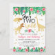 Invitation Deux filles dinosaures sauvages 2e anniversaire
