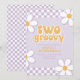 Deux Groovy. Invitation pour un 2ème anniversaire inspirée des années 70 avec des polices de caractères, des marguerites et un motif à carreaux.