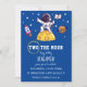 Deux la lune est une invitation magnifique et originale au deuxième anniversaire de votre petit garçon. Le design moderne présente une image haut de gamme d'un astronaute sur la lune sur un arrière - plan bleu étoilé. Le texte ci-dessous est entièrement modifiable par le bouton "personnaliser". Entrez le nom de votre fille et les informations relatives à sa fête d'anniversaire pour rendre cette merveilleuse invitation vraiment unique!
