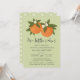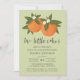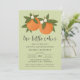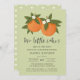 Cette adorable invitation à baby showers jumeaux présente un dessin d'oranges dessinées à la main / peintes avec de petites fleurs sur un arrière - plan de couleur personnalisé (montré en vert citron clair). La typographie élégante dit : "Deux petites villes" sont en route ! Le dos contient un motif simple et assorti aux fleurs d'oranger. Idéal pour la maman qui attend garçon / fille jumeaux! Oeuvre/Illustration de Tracey Khalei / Orabella Prints.