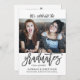 Organisez une soirée multi-grad avec cette invitation/faire-part branchée de remise de diplômes pour BFF, frères et soeurs, cousins, membres de la famille, diplômés de quartier ou autres occasions multi-grad. Cette invitation contient le nom des diplômés, l'année de cours et l'école sur le devant de l'invitation, ainsi que deux exemples de photos (l'une au recto de la carte et l'autre au verso) que vous remplacez par les photos souhaitées. Le verso de l'invitation a un modèle texte pour les détails de la fête de remise des diplômes. Le jeu de couleurs est le texte gris fusain sur un arrière - plan blanc.