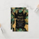 Célébrez le deuxième anniversaire de votre petite chose sauvage avec cette invitation à thème safari dans la jungle, avec des animaux en fausse feuille d'or (girafe, lion et singes), le feuillage de jungle d'or et verte, et un arrosage de confettis d'or sur un arrière - plan noir. Ajoutez le nom de votre enfant et les détails de la fête en texte blanc et or. Un motif coordonné de feuillage de jungle en vert et or sur un arrière - plan noir décore le dos de la carte.