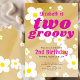 Invitation Deux Super 2ème anniversaire Tan Flower Power Hipp
