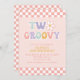 Deux Super Retro inspiré 2ème anniversaire invitation avec des polices de style 70's et des marguerites et motif vérificateur.